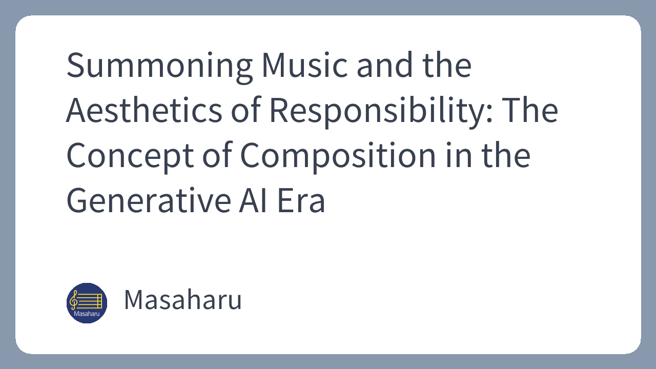 Furthermore, by viewing Suno as a “mirror that retro-reflects the concept of composition,” I will also attempt to present a new role for composers and an aesthetics of responsibility in the age of generative AI. This is not an inquiry into whether “AI can replace composition,” but an attempt to shed light on the fundamental question of “what is irreplaceable in composition?”