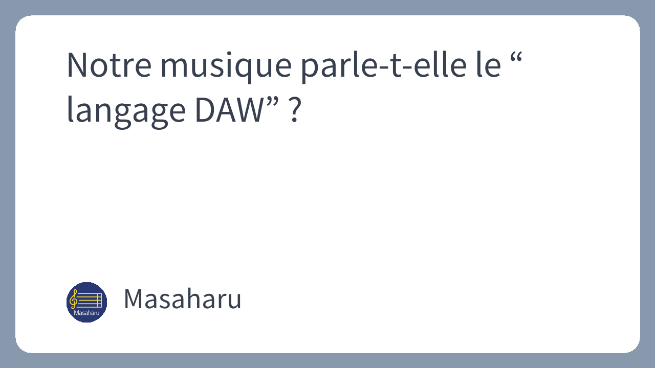 Le premier pas pour trouver la réponse à cette question n’est autre que de prendre conscience de l’existence du « langage DAW ». En comprenant profondément ses contraintes subtiles et en les retournant à notre avantage, notre créativité pourra peut-être s’épanouir vers une profondeur encore plus riche.