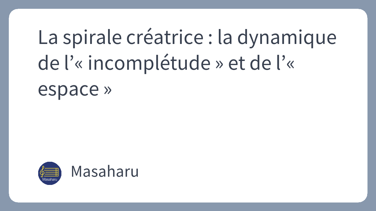 Dans cet essai, je considérerai donc cette période d’incomplétude, à l’origine de notre acharnement, comme l’« inspiration de la création », et l’espace qui en découle comme l’« expiration de la création ». À travers une perspective introspective, j’explorerai la dynamique de la « spirale créatrice » tissée par ces deux états.